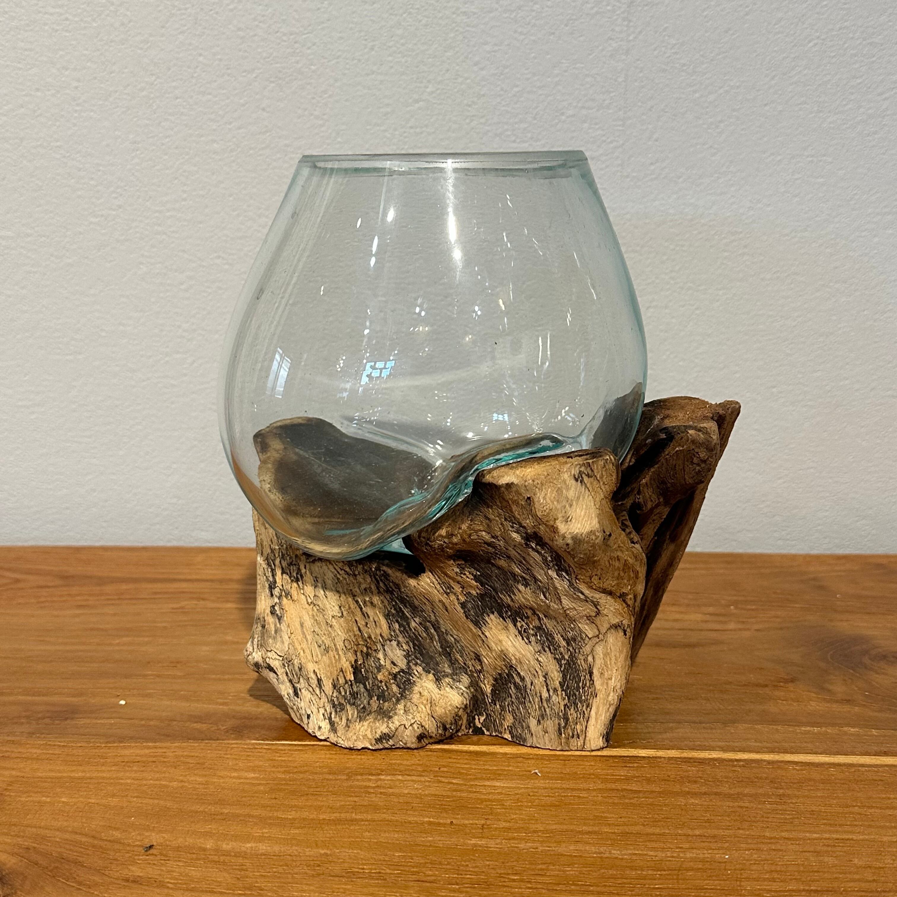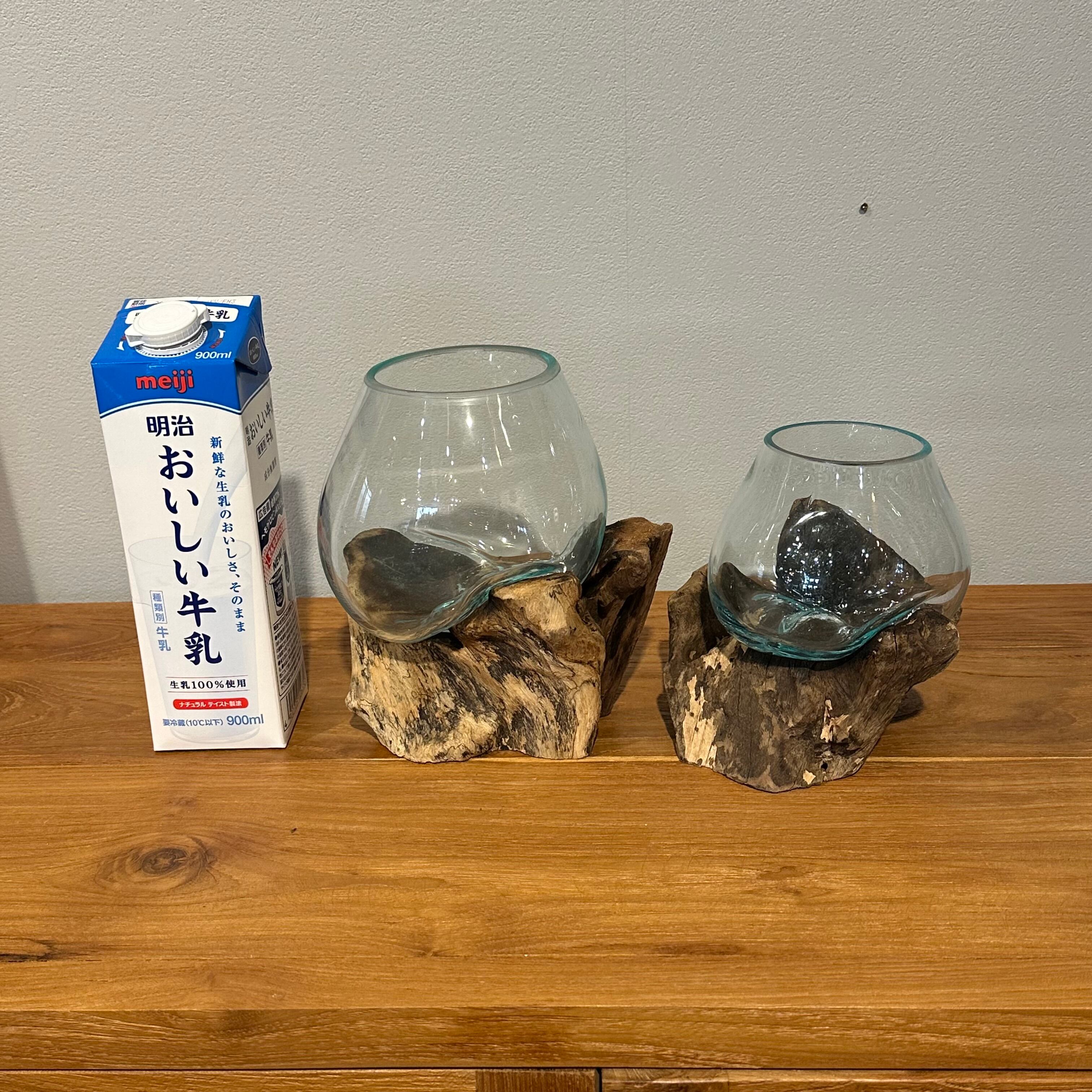 また、製作過程で熱いガラスを流木に押し当てて作るので、焦げ目が付いています。ご理解ください。