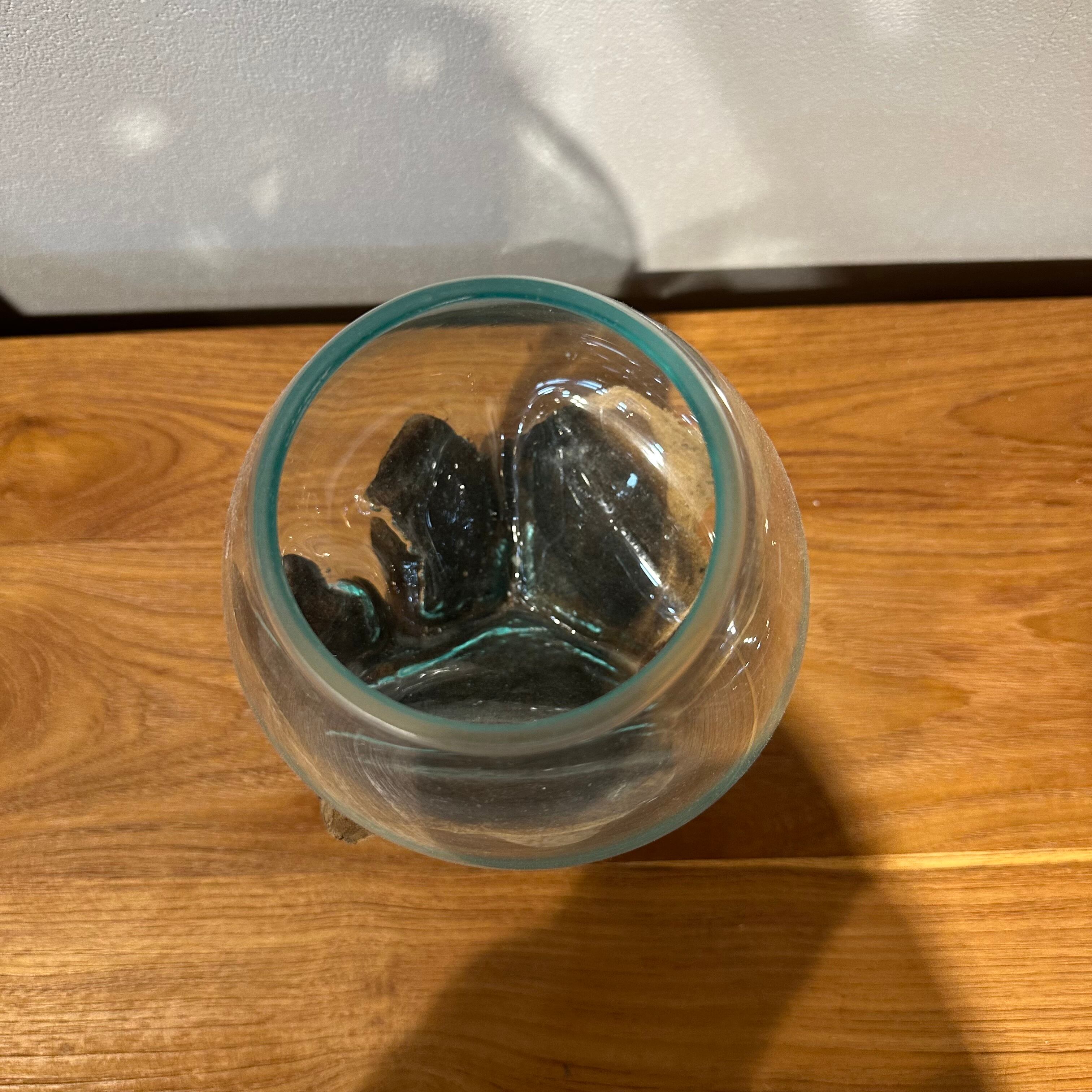 また、製作過程で熱いガラスを流木に押し当てて作るので、焦げ目が付いています。ご理解ください。