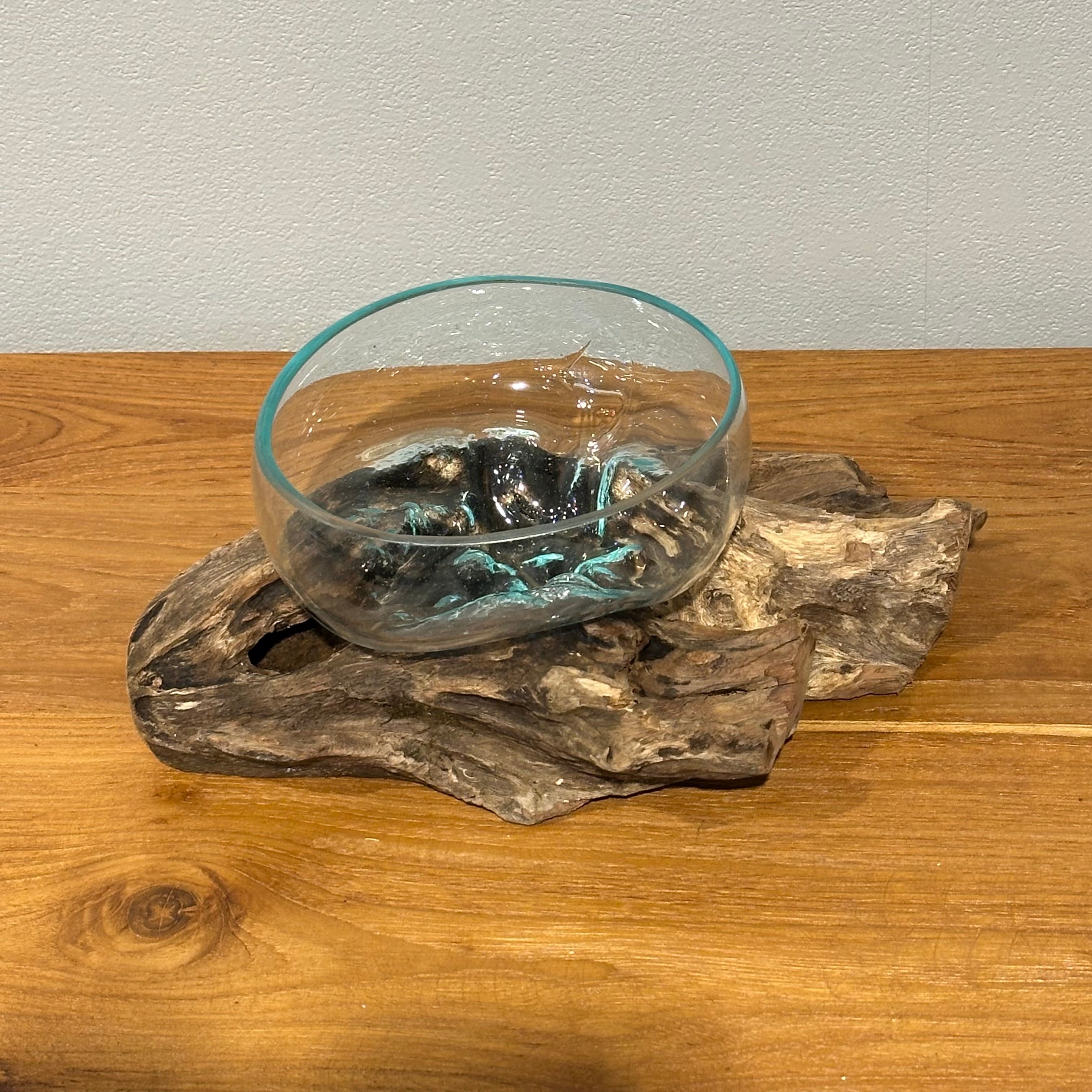 ウッドとブルーが美しいバリガラスのコラボレーション。