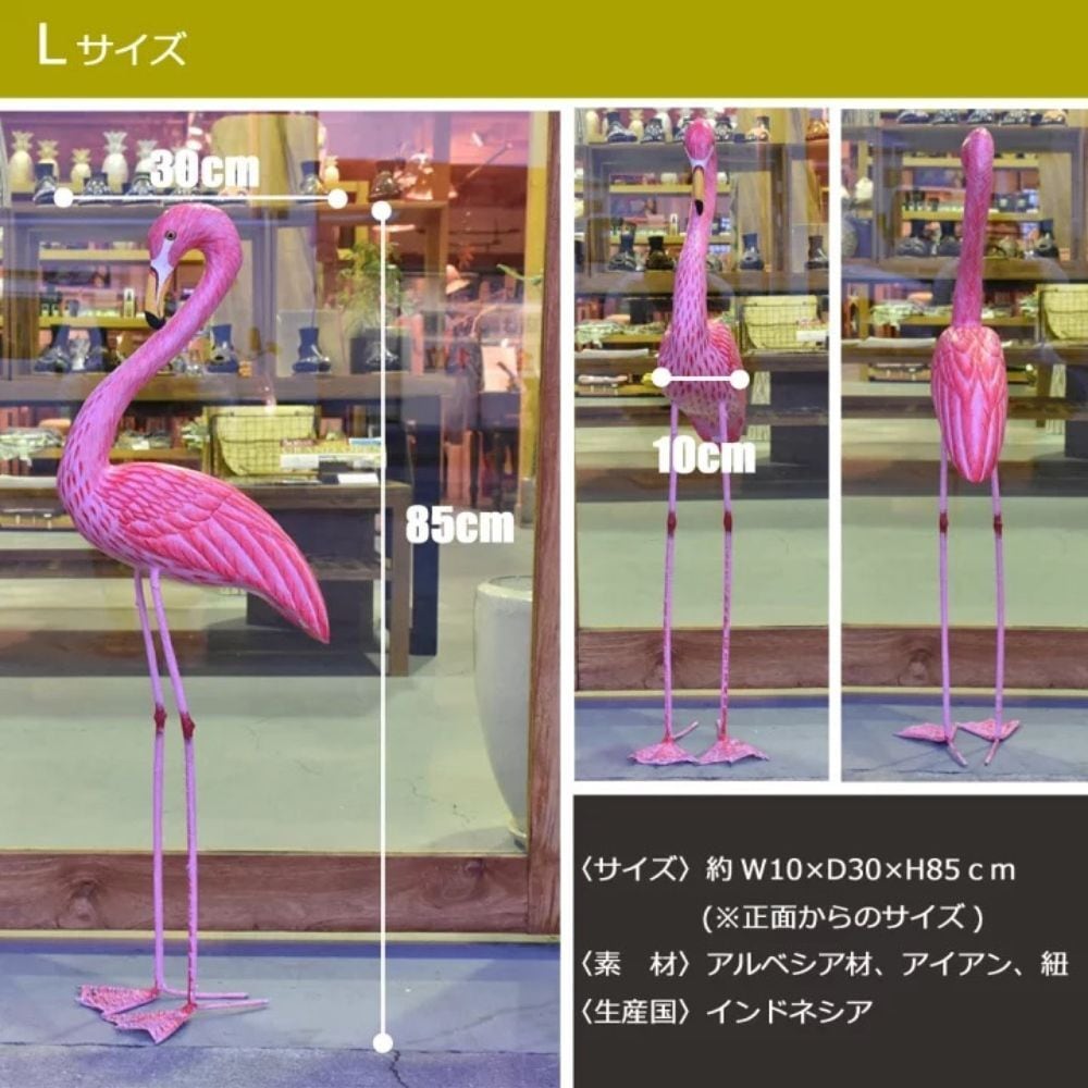 ピンクカラーが可愛い木彫りのフラミンゴです。